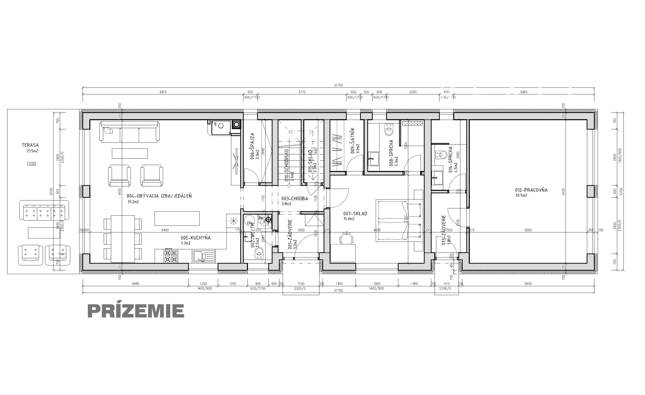 PROJEKT, ktorý je zahrnutý v cene ponúka moderné a premyslené bývanie s celkovou úžitkovou plochou cca 200 m².