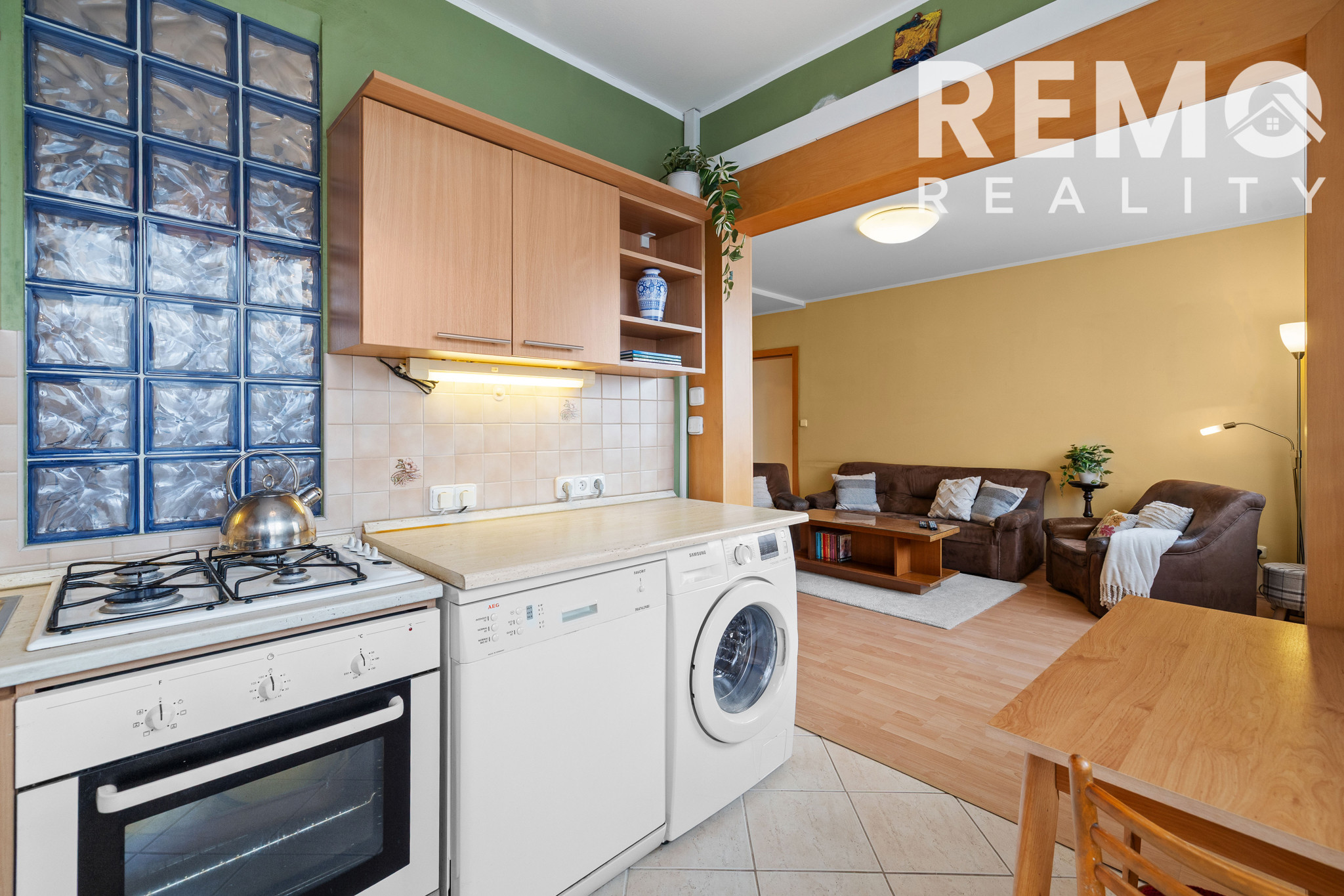 Vstup vedie do priestrannej chodby s miestom na šatníkovú alebo vstavanú skriňu. Z chodby je prístup do samostatného WC a presvetlenej kúpeľne so sprchovacím kútom aj vaňou. V kuchyni sa nachádza rohová kuchynská linka s jedálenským kútom a výstupom na balkón. Je čiastočne prepojená s obývacou izbou, čím vzniká príjemný otvorený denný priestor. Krásna, svetlá obývačka s klimatizáciou poskytuje dostatok priestoru aj pre vstavanú skriňu.