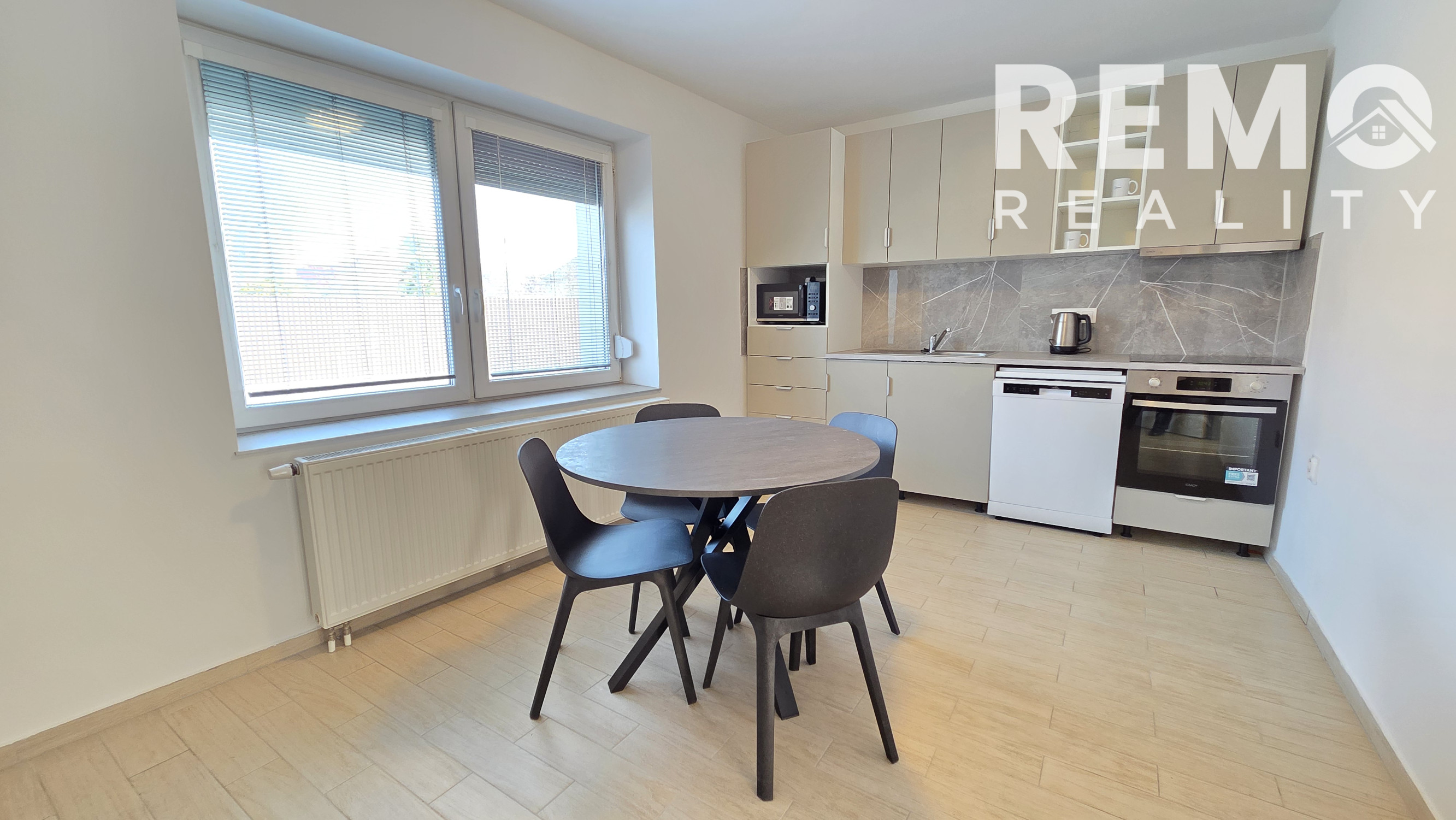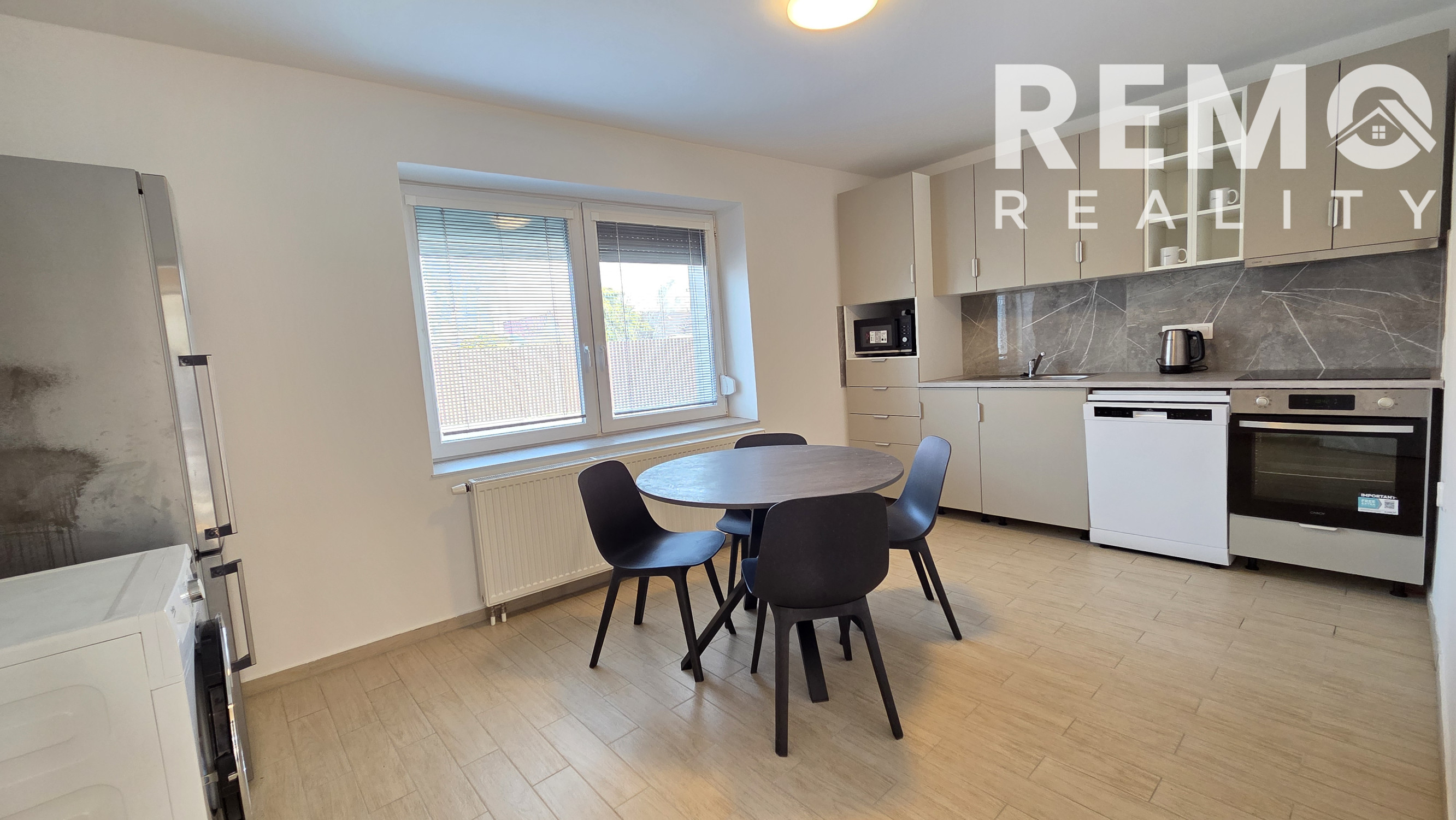 Kuchyňa je vybavená novou kuchynskou linkou so spotrebičmi – rúra, umývačka riadu, mikrovlnná rúra, chladnička, práčka a sušička, takže byt poskytuje komfortné bývanie bez nutnosti ďalších investícií.