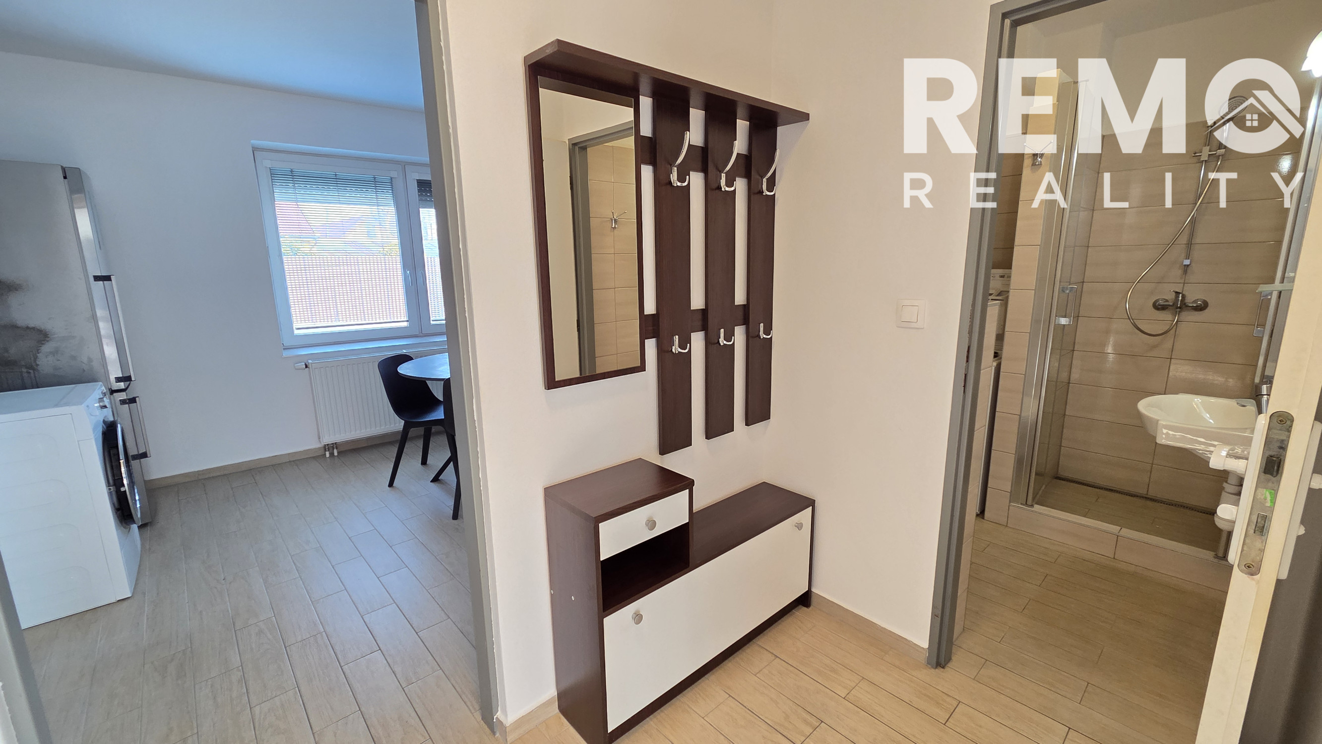 Dispozične pozostáva z vstupnej chodby, kúpeľne so sprchovacím kútom a toaletou a veľkej obytnej miestnosti prepojenej s kuchyňou. Priestor je dostatočne veľký na to, aby si nájomca vedel vytvoriť menšiu obývaciu časť aj oddelený priestor na spanie, čo výrazne zvyšuje komfort bývania.