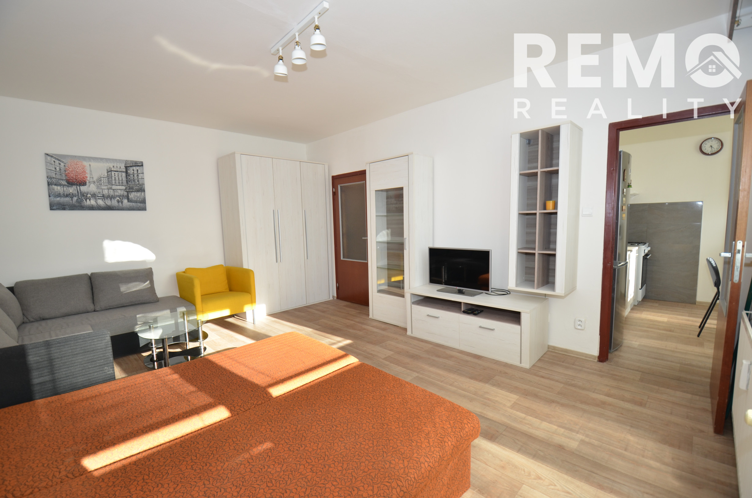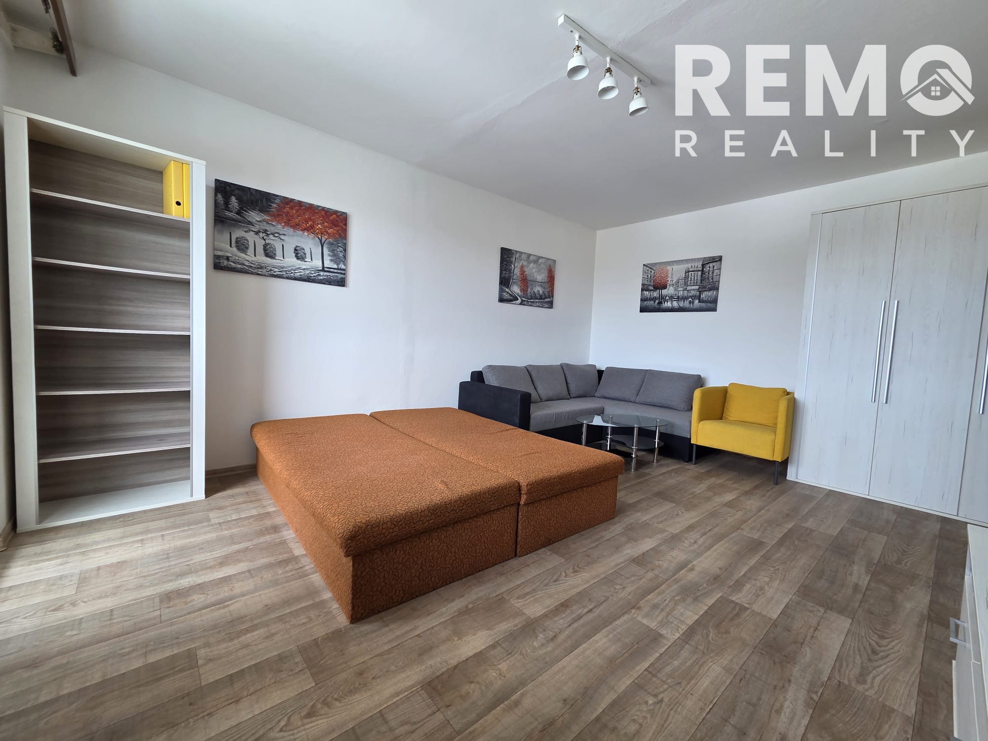 Vybavenie: Byt sa prenajíma zariadený tak, ako je viditeľné na fotografiách. K dispozícii je rozkladacia sedacia súprava, 2x šatníková skriňa, knižnica a kuchynská linka s jedálenskou časťou.