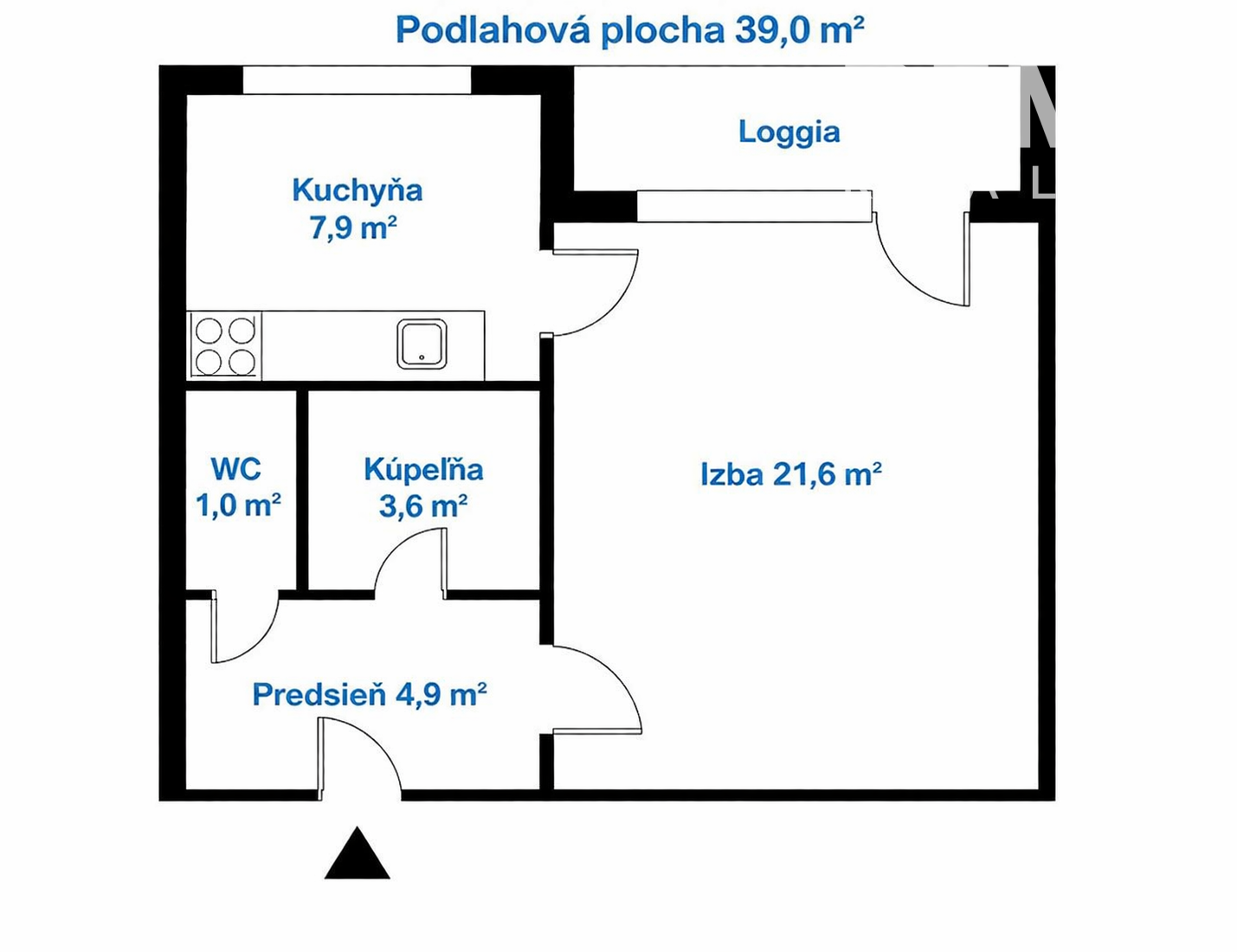 Výmera je cca 39 m² + lodžia 4,5 m².