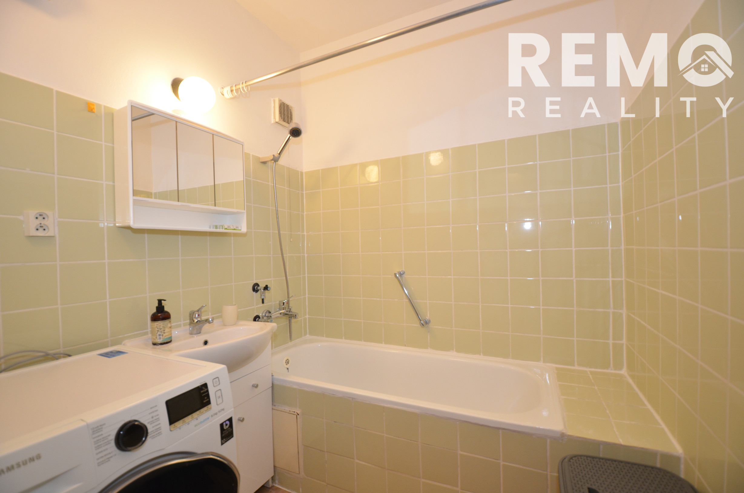 V kúpeľni sa nachádza práčka so sušičkou, čo zvyšuje komfort každodenného bývania.