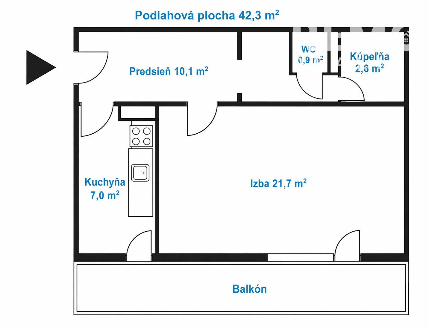 Súčasťou bytu je aj samostatná kuchyňa o výmere 7 m², ktorá je prakticky riešená a ponúka dostatok priestoru na každodenné fungovanie.